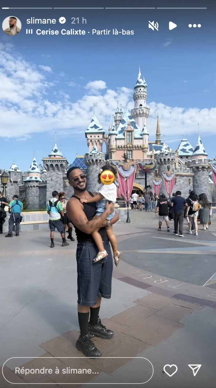 Une journée féerique. Après avoir dévoilé un nouveau titre et une tournée à travers toute la France, Slimane a décidé de s’offrir un peu de bon temps avec sa fille Esmeralda. Ce mardi 21 octobre, soit plus de dix jours après son 36ème anniversaire, le chanteur a fait un joli cadeau à la fillette en l’amenant à Disneyland. Ravi de partager ce moment, l’ami de Vitaa n’a pu s’empêcher d’immortaliser leur venue dans le célèbre parc d’attractions en prenant la pose devant le château de la Belle au Bois Dormant. Sur ce cliché, dévoilé le temps d’une story Instagram, Slimane affiche un large sourire et regarde en direction de l’objectif.