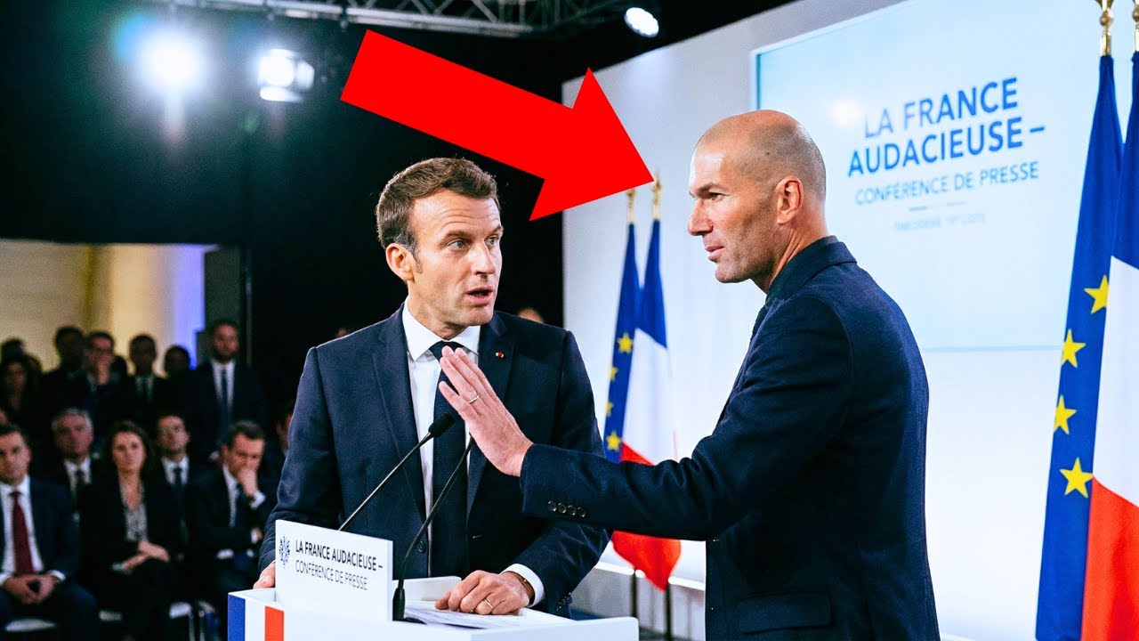 Lentement, sans précipitation, il se penche légèrement vers le micro devant lui. Il ne coupe pas la parole, il lève simplement la main. Le geste est discret mais il est vu. Les techniciens hésitent une seconde. Macron s’interromt. Il tourne la tête. Il reconnaît Zidane. Un silence s’installe plus dense que tous les applaudissements précédents.