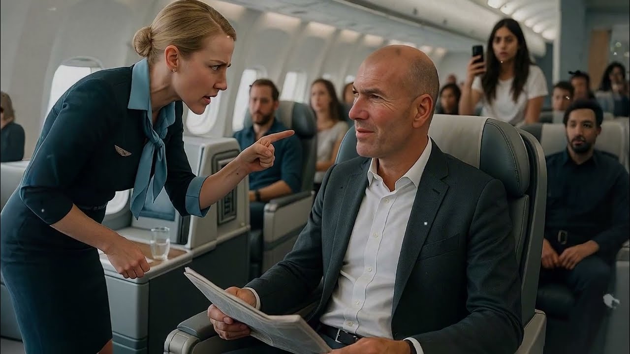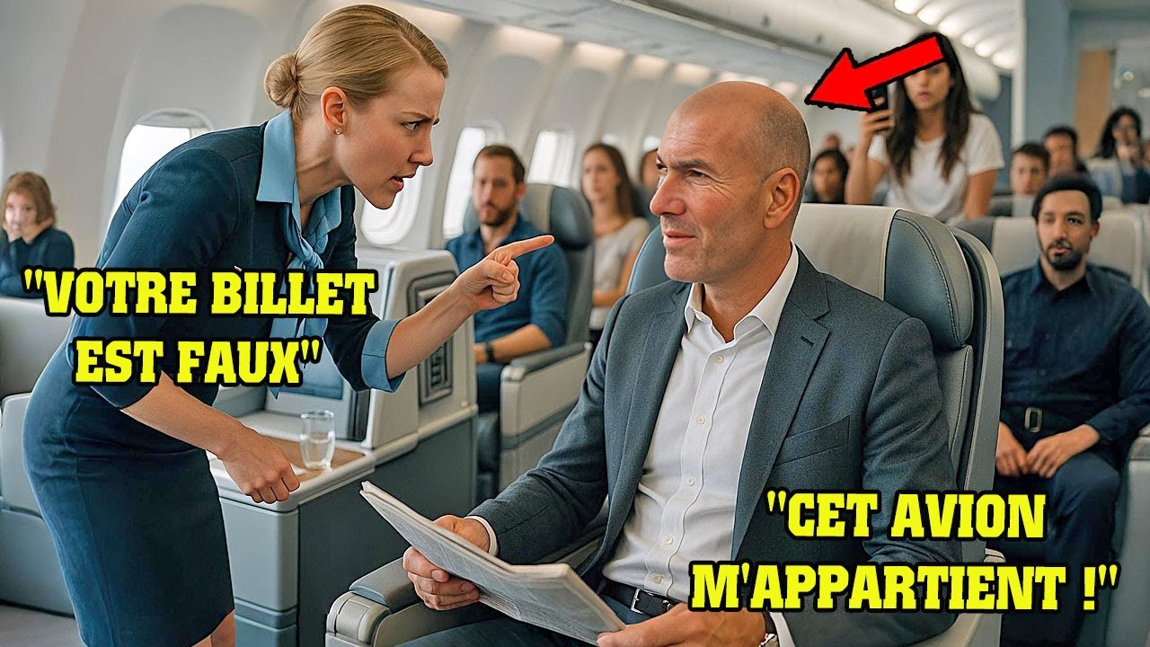 Son badge brillait sous les lumières tamisées, mais son expression trahissait une froideur inhabituelle. “Monsieur, je vais devoir vous demander de quitter ce siège”, dit-elle d’un ton sec. Sa voix tranchant l’air comme une lame. Les têtes se tournèrent, les conversations s’interrompirent. Zidane releva lentement les yeux de son magazine, son regard calme et pénétrant rencontrant celui de Claire. “Pardon ?” répondit-il.