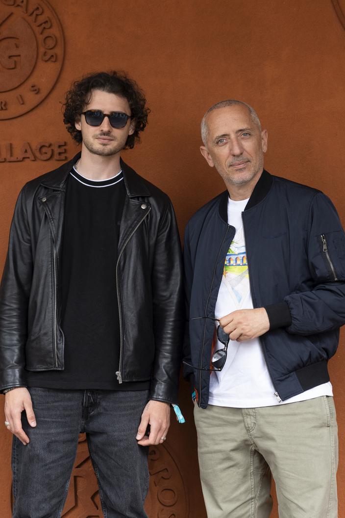 Gad Elmaleh avec son fils Noé au village lors des Internationaux de France de Tennis de Roland Garros 2025, à Paris, le 8 juin 2025. CYRIL MOREAU / BESTIMAGE