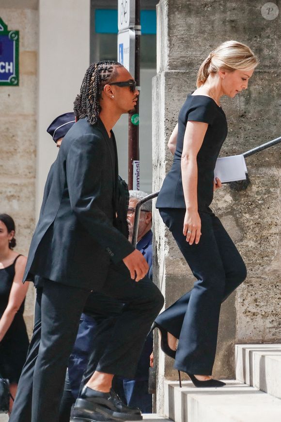 Audrey Crespo-Mara et ses fils Sekou et Lamine – Arrivées aux obsèques de Thierry Ardisson en l’église Saint-Roch de Paris, France, le 17 juillet 2025. © Clovis-Jacovides/Bestimage