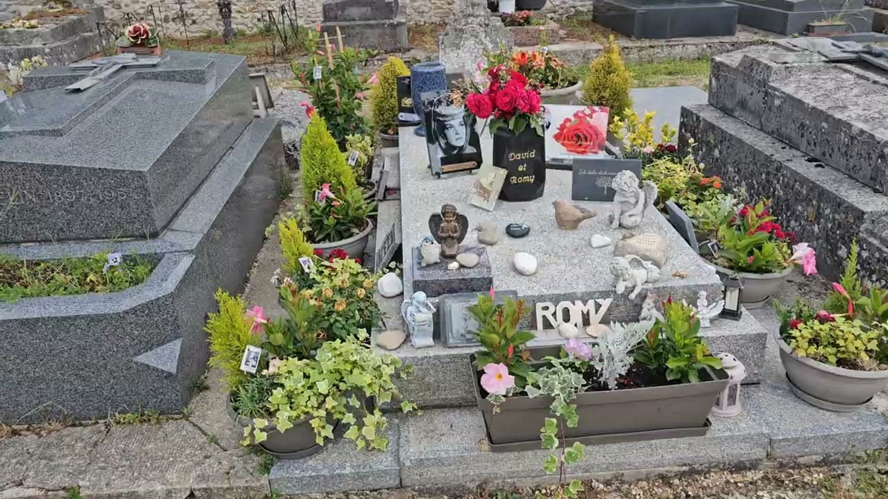 En conclusion, cette vidéo de la tombe de Romy Schneider est bien plus qu’un simple document touristique ou nécrologique. C’est un appel à la mémoire. C’est une invitation à ne jamais oublier que l’amour, lorsqu’il est vrai, traverse le temps et la mort. Alain Delon a passé les 42 dernières années de sa vie à survivre à Romy. Aujourd’hui, le chapitre est clos. Le livre s’est refermé. Mais en voyant le lierre enlacer la pierre de Boissy-sans-Avoir, on se dit que leur histoire, elle, ne finira jamais. Romy et Alain, les amants magnifiques, continuent de s’aimer dans le silence des cimetières et le fracas de nos souvenirs. Et cette tombe, modeste et digne, restera à jamais le point final le plus bouleversant du cinéma français.